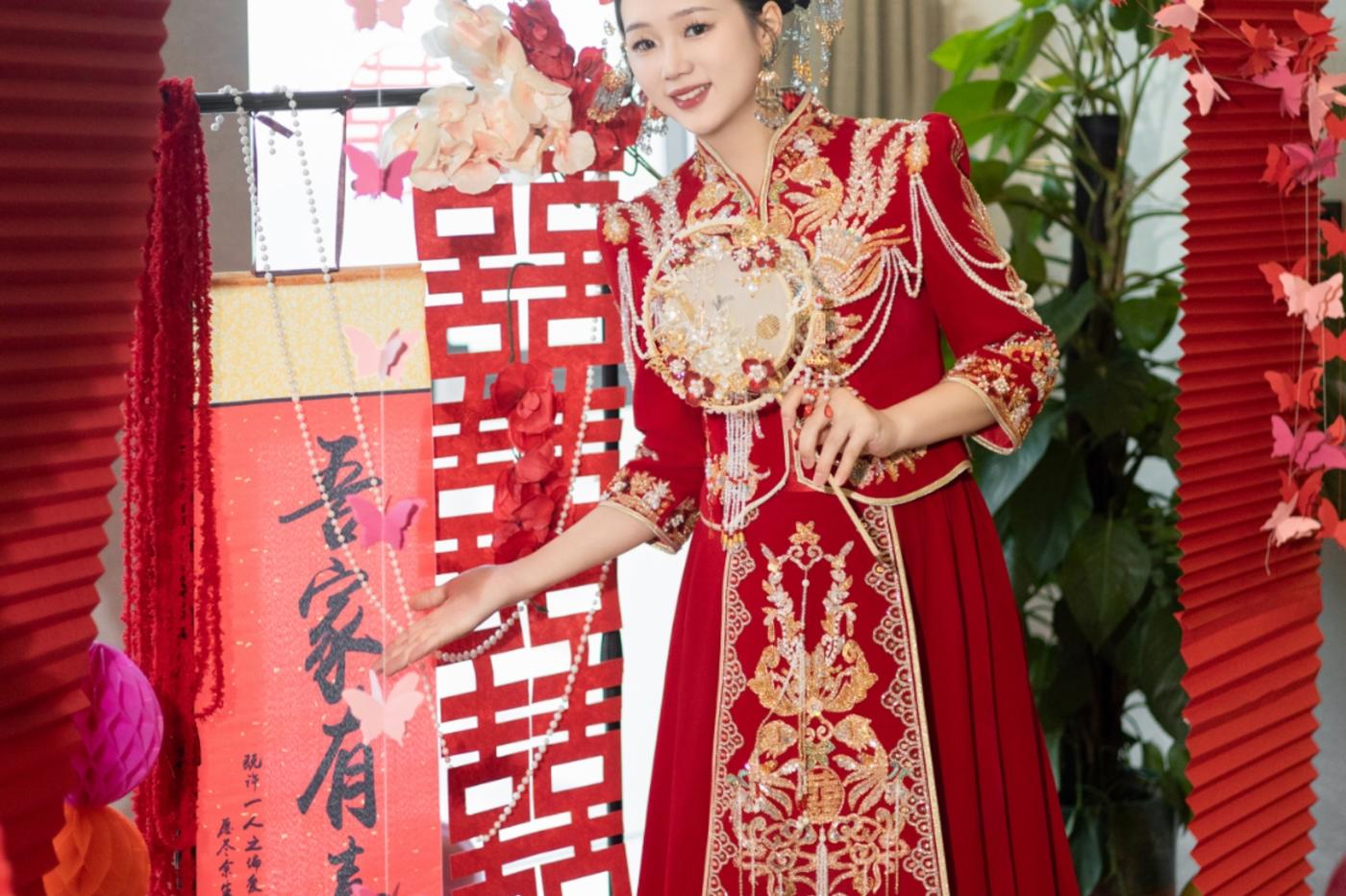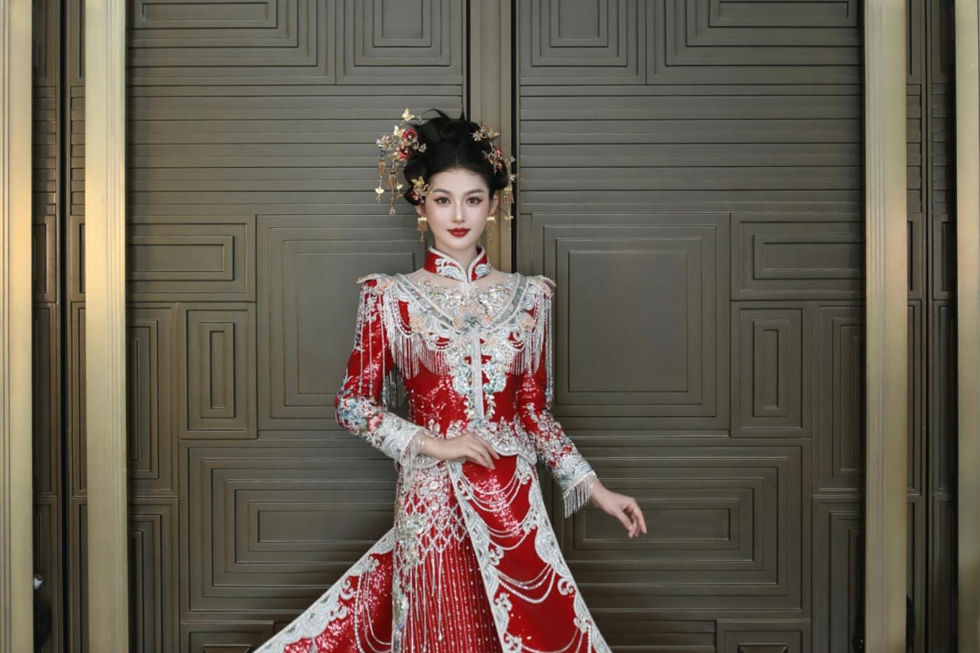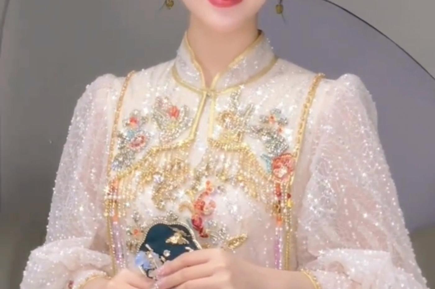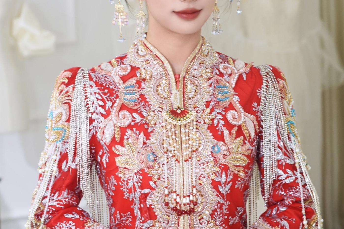 新品推荐|[紫鸢] 素手掬青霭,罗衣曳紫烟,此款新中式礼服巧妙融合传统与现代元素,打造独特东方魅力。 淡紫色调营造出神秘、优雅氛围,宛如梦幻之境。选用轻盈的纱与精致绸缎,纱的朦胧增添梦幻感,绸缎的顺滑凸显质感,二者结合使礼服兼具飘逸与端庄。[更多…]